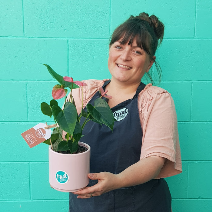 Pink Anthurium Plant In Blush Pink Ceramic Pot Mint Floral Nz